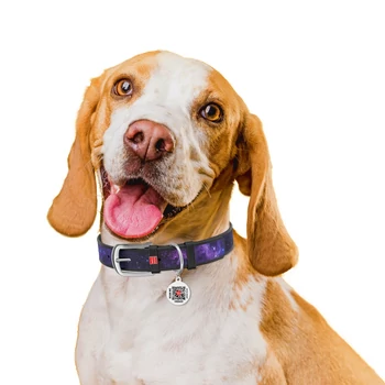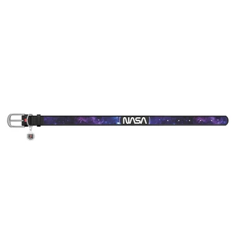 WAUDOG Design genuine leather dog collar with QR passport, "NASA21" design, S fekete
