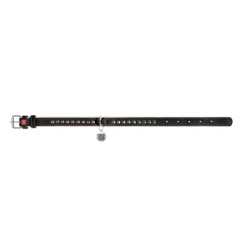 WAUDOG Soft genuine bőr nyakörv QR kóddal, metál díszítéssel S Fekete