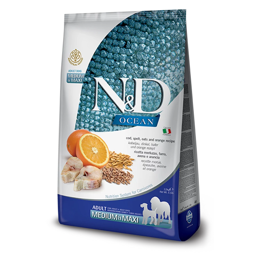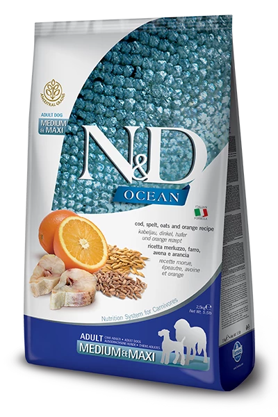 A kutyák, természetes környezetükben, csaknem kizárólag hússal táplálkoznak és nincs szükségük magas szénhidrát bevitelre. Ezt a filozófiát követve fejlesztettük ki az N&D Ocean Formuláit. Ez a gabonamentes táp magas százalékú állati eredetű fehérjéket (60% felett), narancsot, zöldségeket tartalmaz, melyek kiváló tápértékekkel rendelkeznek.